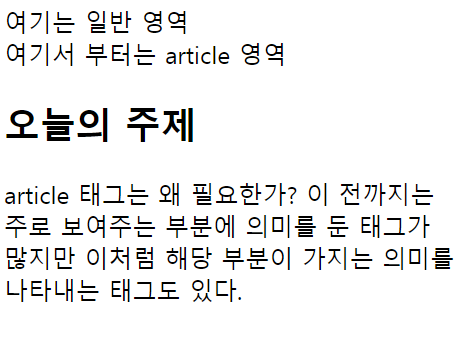 17. <article> : 이 태그는 독립적이고 독자적인 컨텐츠를 지정한다. 이 태그를 사용할 수 있는 분야는 포럼 게시물, 블로그 포스트, 신문기사 등이 있다.