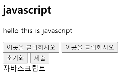 (*) 여기서 input이랑 button으로 똑같은 기능을 하는 두 개를 작성했는데 이유는 문득 input으로 만든 버튼과 button으로 만드는것이 다를까 라는 근본적인 궁금증 때문이다. input으로 만드는것으로 연습해 보자