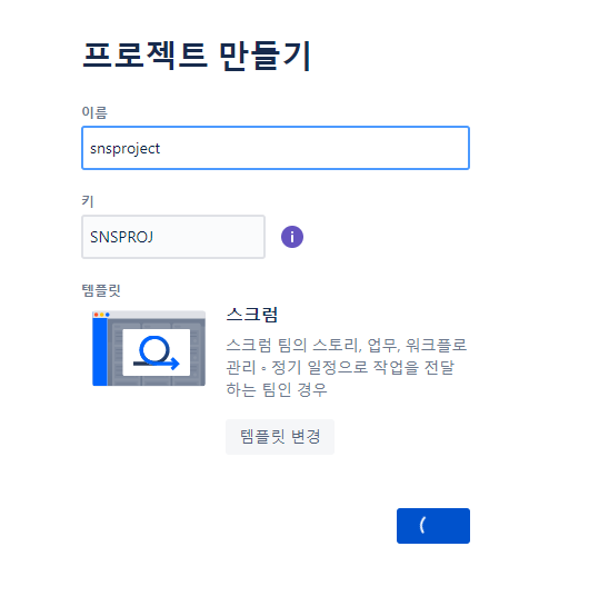 이름에는 본인이 진행하고자 하는 프로젝트의 이름을 적는다.